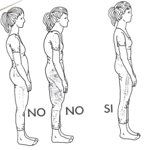 POSTURE VIZIATE: Il nostro corpo adotta posture viziate nella ricerca di una posizione che richieda il minimo sforzo. Tuttavia, una postura scorretta ne può generare altre in un effetto a catena, al fine di compensare e dare tregua ai muscoli stanchi, peggiorando però lo stato clinico generale. Si tende, per conservare un equilibrio e ridurre il disagio muscolare che può causare dolore, ad adottare una postura che possiamo osservare nell’illustrazione, con la testa protesa in avanti, la schiena arcuata all’indietro e l’addome sporgente.