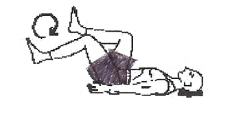 - ruotare le ginocchia verso destra mantenendole vicino al petto con i piedi in flessione dorsale;