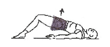- inspirare, effettuare la retroversione del bacino e sollevare il bacino contraendo i muscoli addominali e glutei;
