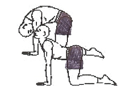 Cosce e arti superiori ad angolo retto rispetto al tappeto, colonna vertebrale allineata evitando l’aumento sia della lordosi lombare che della cifosi dorsale.